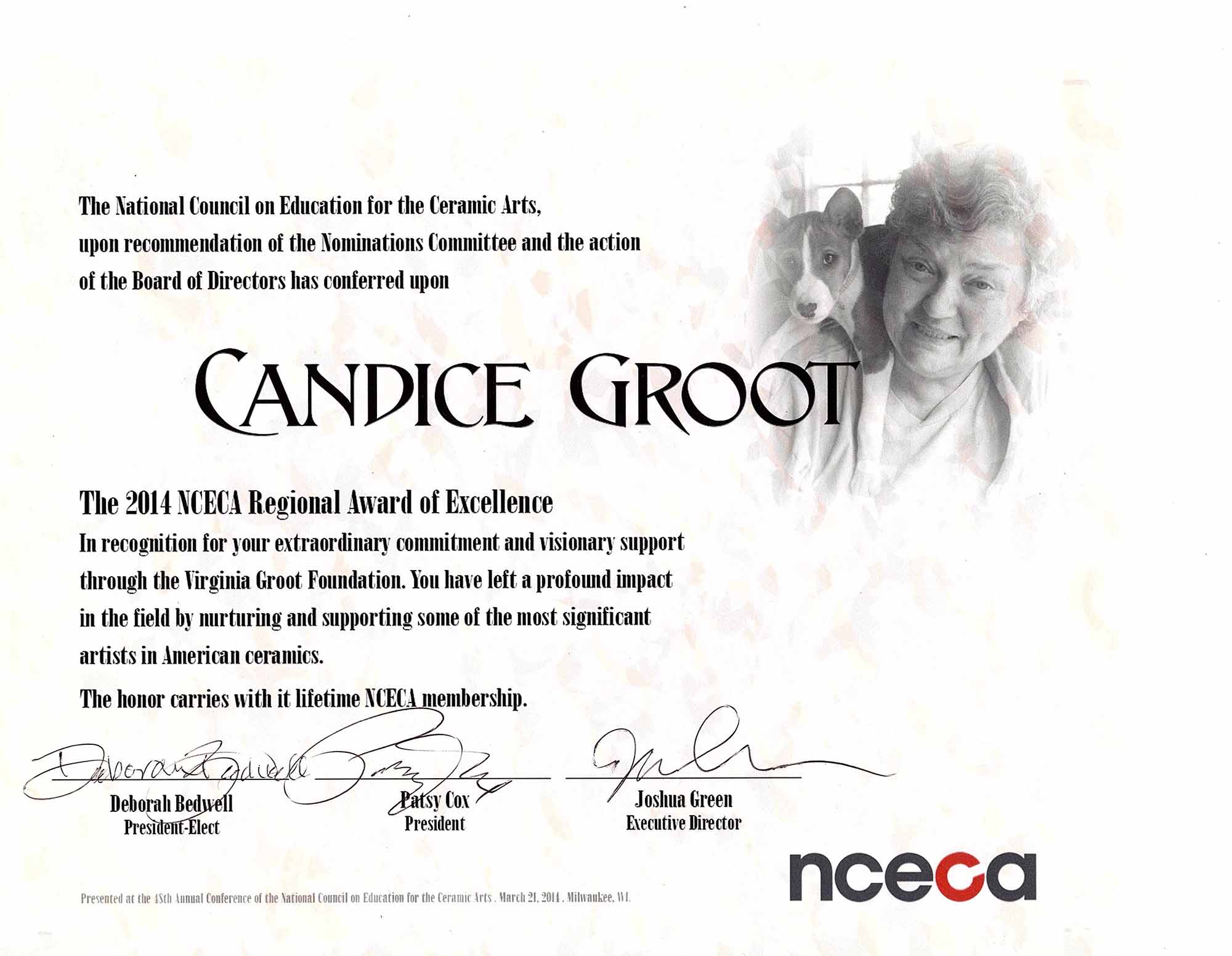 A prominent figure in philanthropy, particularly within the art community, Candice B. Groot was deeply invested in the arts both professionally and academically. She earned a Master of Fine Arts (MFA) in Ceramics and Sculpture from Texas Tech University, laying a solid foundation for her later work. Candice was often involved in fundraising efforts, supporting emerging artists, and contributing to the establishment and sustenance of art programs and exhibitions. In 2014, her significant contributions to the field were formally recognized when she received the Award for Regional Excellence from the National Council on Education for the Ceramic Arts (NCECA). Her work centered mostly around ceramic sculptures and had a particular focus on contemporary art—areas that sometimes don't receive as much attention or funding as other forms of art.